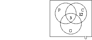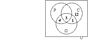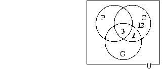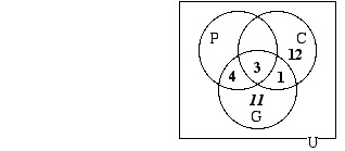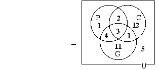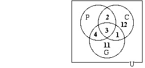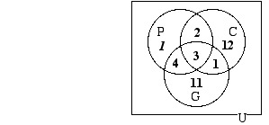Now that the diagram is filled in in such a way that there is one number in each of its eight regions, we can answer the questions that were given: