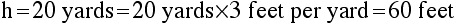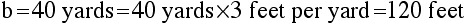 Now, in the figure shown the measurements are expressed in yards, but we want to compute the triangle's area in square feet, not square yards. This suggests that we should convert units from yards to feet before using the formula for area. To convert from yards to feet we multiply by 3: