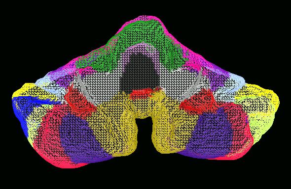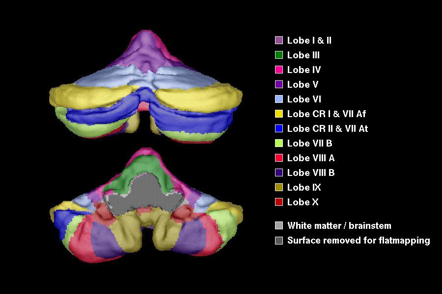 For some older pictures of flat maps of the cerebellum that were created using an older cutting method (which has now been abondoned), click here.