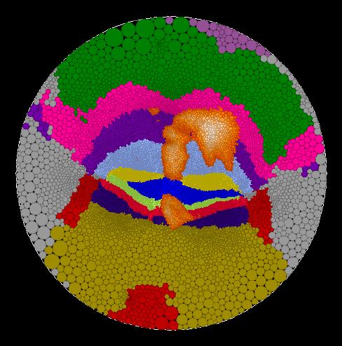 However, it is possible to flatten a surface such that the angular distortion is zero when given two points or a point and a direction (the Riemann Mapping Theorem). This is known as a conformal map (when angle proportion and angle direction between the original surface and the flattened surface is preserved). We take the unique approach of implementing the Riemann Mapping Theorem to create a map of the brain which attempts to preserve the conformal structure between the original surface and the flattend surface. To do this, we use the concept of circle packing.