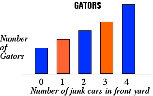 The graph below shows the distribution of a group of Gator fans according the number junk cars in their back yards. Select the statement that correctly gives a relationship between measures of central tendency for this distribution.