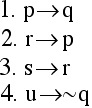 To again continue the chain of reasoning, we must return to the orginal premise list and find a premise whose antecedent is "p." We see that from the original list,