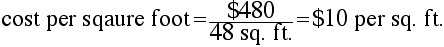 Since the cost of one of these rectangular objects depends upon its area, we can use the fact that a 6 by 8 foot deck costs $480 to find the cost per square foot of one of these decks. Then we will use the cost per square foot to find the cost of the 18 by 24 foot deck.